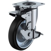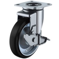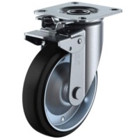 ユーエイキャスター(中荷重)|自在車(ダブルベアリング) プレート式 J2K-S型(シングルストッパー+旋回ストッパー付)