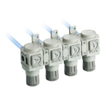 ・F.R.L.コンビネーション(AC-Dシリーズ)とモジュラ結合が可能で、異なるラインの圧力制御を1ユニット化!