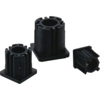 ・角パイプとレベリングフットを連結するジョイント。 ・3種類の角パイプに適用できます。 ・ねじインサートは真鍮製。耐蝕性にすぐれています。