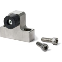 ・ウレタン「NSBU」を組み込んだコンパクトタイプのリニアガイド用ストッパ。機器・装置の省スペース化やスペースが限られた箇所に。