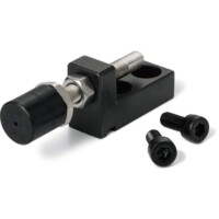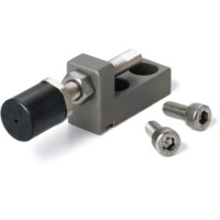 ・ウレタンつきストッパボルト「NSBUH」を組み込んだコンパクトタイプのリニアガイド用ストッパ。機器・装置の省スペース化やスペースが限られた箇所に。