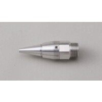 ・ノズル後部に液体流量調整のためのニードルバルブが付いており、一定の空気圧のもとで液体流量を変化させることによって、ミスト粒子径を変えることができます。