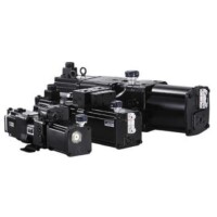 ACサーボモータで油圧ポンプの回転速度と方向を制御。
