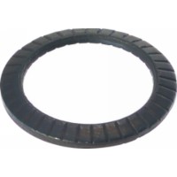 ・ばね作用が大きいので、ねじの軸力が十分維持されます。ボルトの軸力は座面の周りで均等に支持されるので、ボルトに曲げモーメントが働きません。ギザがあるので、ボルトがずれ動きません。内外周部にはギザがないので、局部的応力の負担が少なくて済みます。