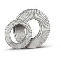・ノルトロックワッシャーは、クサビ状のカムを利用したウェッジロッキングの技術に基づいており、激しい振動や変動荷重に対してもボルト締結部を安全に固定することができます。