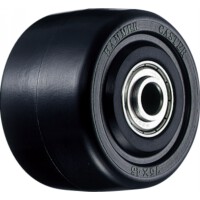 ・イモノ車輪等の代替品として採用されたものでゴムやイモノ車輪よりは歴史の新しい材質です。