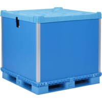 ・上下パレットと強化プラスチック段ボールによるリターナブルパレットボックスです。